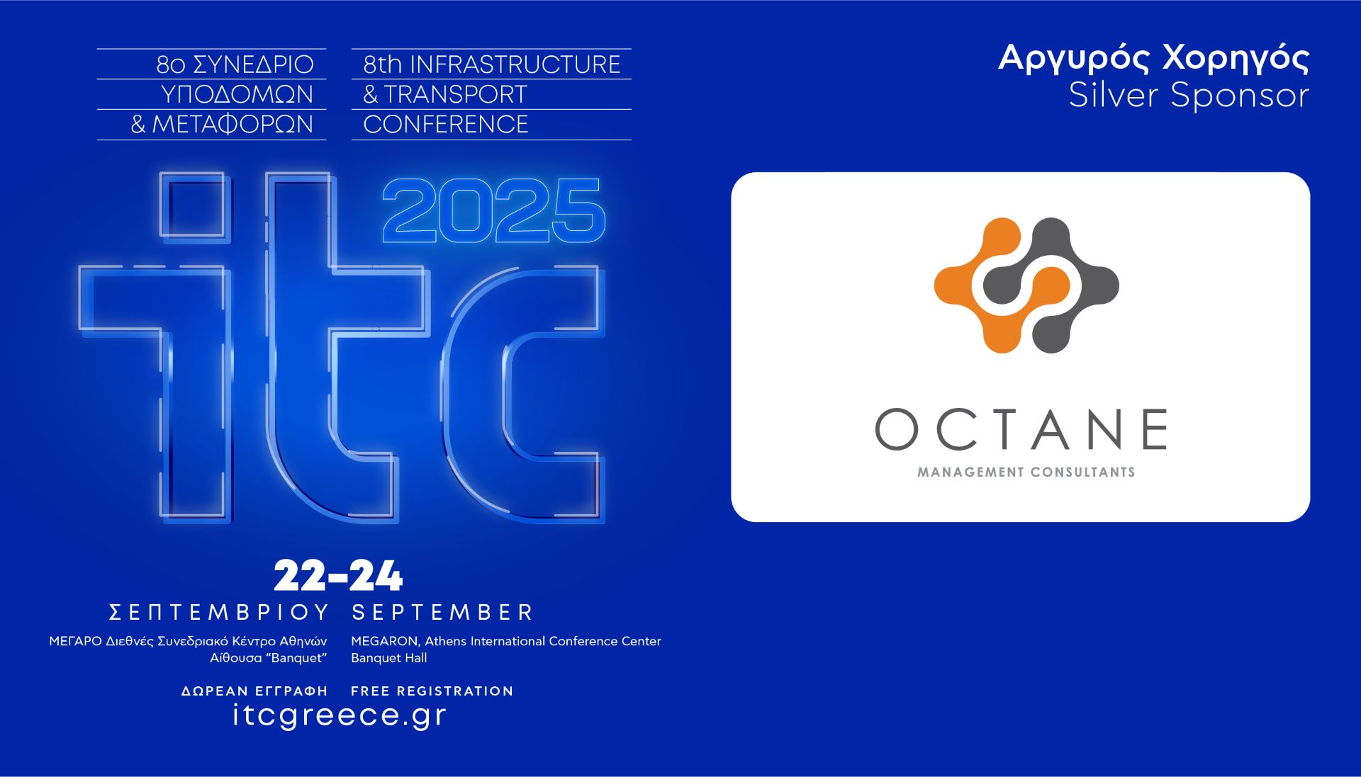 Η OCTANE είναι Αργυρός Χορηγός στο 8ο Συνέδριο Υποδομών & Μεταφορών – ITC 2025 που θα πραγματοποιθεί από 22 έως 24 Σεπτεμβρίου.